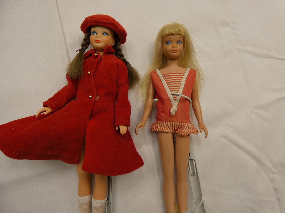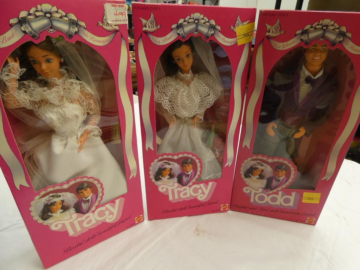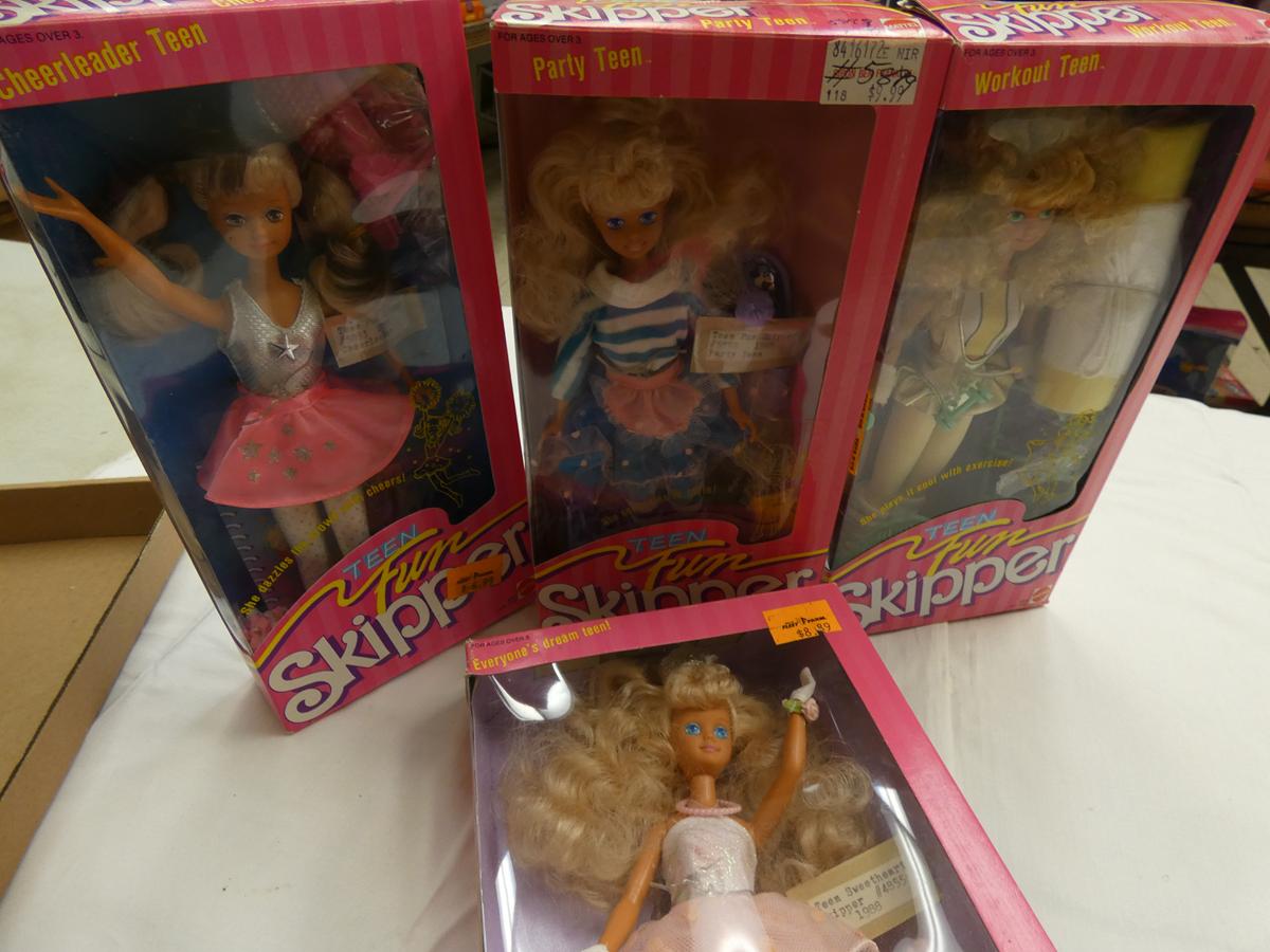 Vintage Barbie – Midge – Skipper – Sooter – Ken and Allan! A LARGE assortment of Barbie dolls and some accessories from 1962 – present, many still IN BOX. Other dolls include: 1977 Farrah Fawcett doll. Dolls of: Elvis Presley, Mary-Kate & Ashley, Shirley Temple, various U.S. Presidents & First Ladies, “I Love Lucy” and others. Poseable figures including: Beverly Hillbillies, James Dean, George Burns. Vintage Chrissy dolls. Porcelain dolls. Dolls from Danbury Mint, Paradise Galleries, Brinn’s, Knowles, and Franklin. Paper dolls. And much more! See bidding site for photos and details.