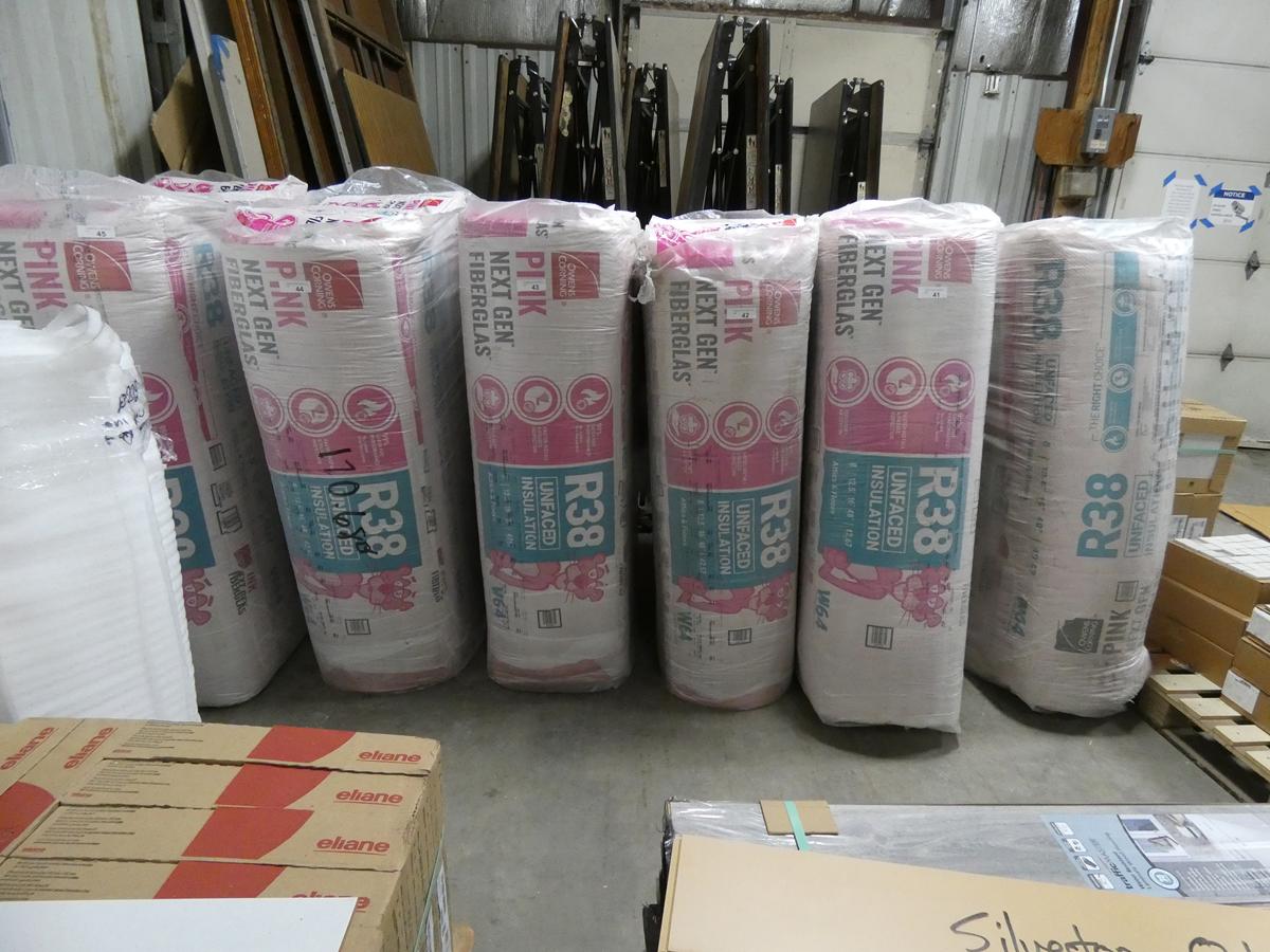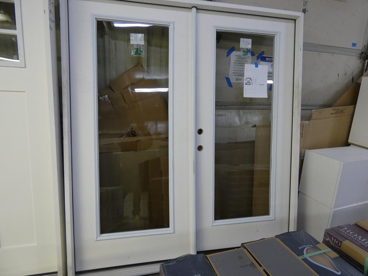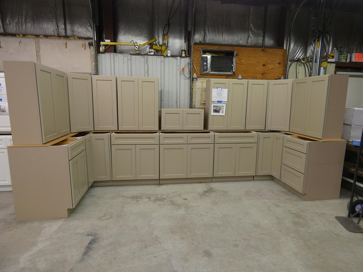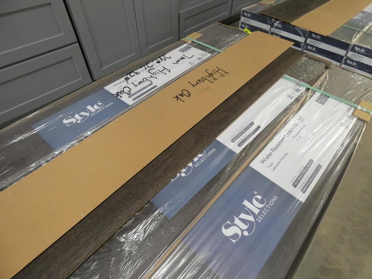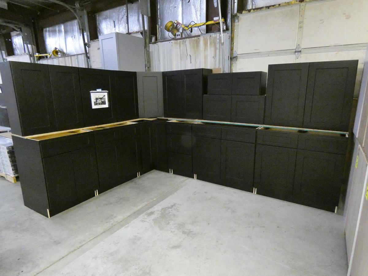 Seven kitchen cabinet sets with 12 – 16 pieces, flooring: laminate – vinyl – hardwood, bags of insulation, Jacuzzi tubs, French patio door, bathroom vanities, farmhouse sinks, stainless steel sinks, kitchen faucets, doors, laminate padding, wall sconces, trim, and much more! See bidding site for photos and details.
