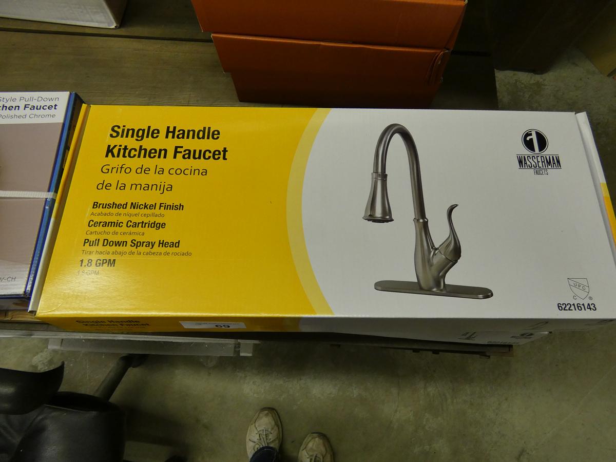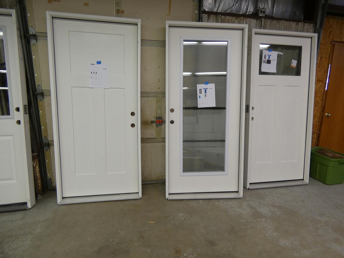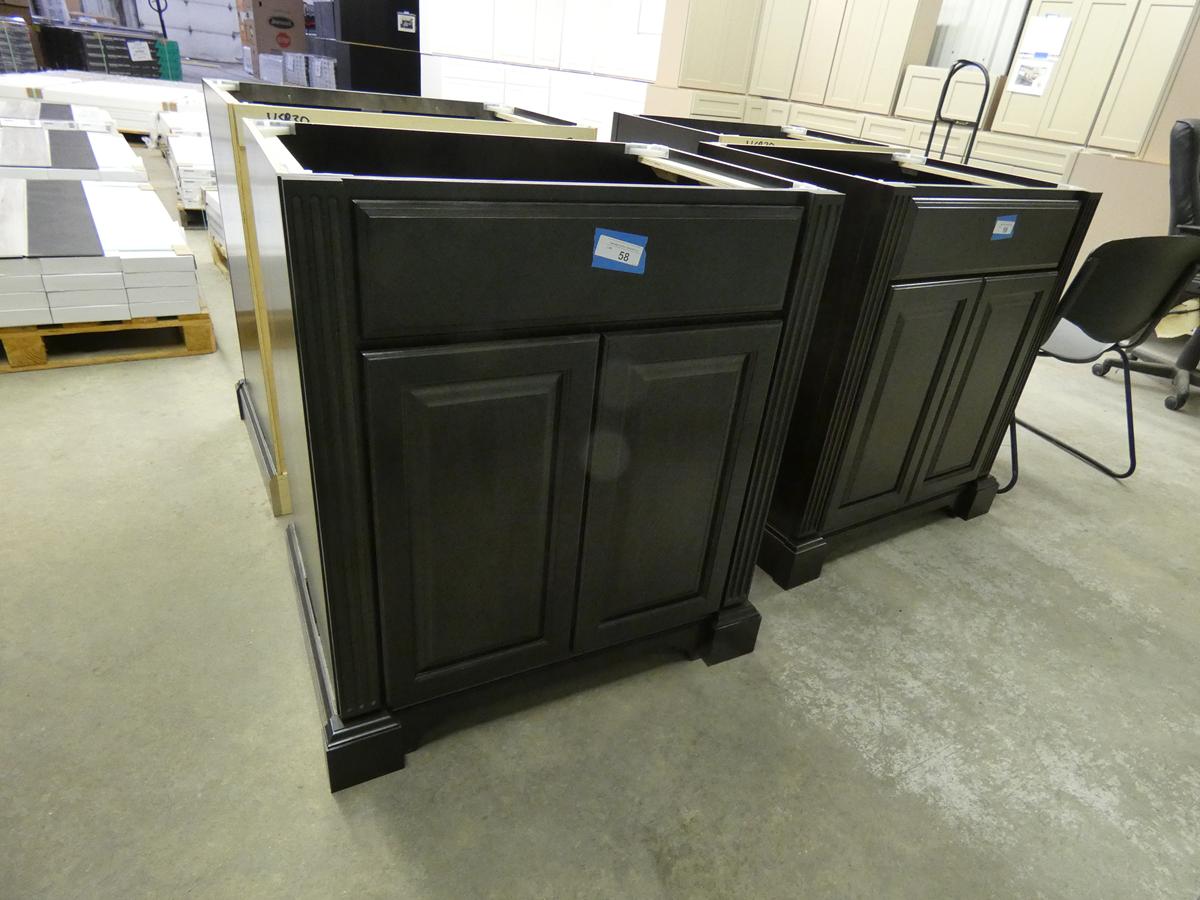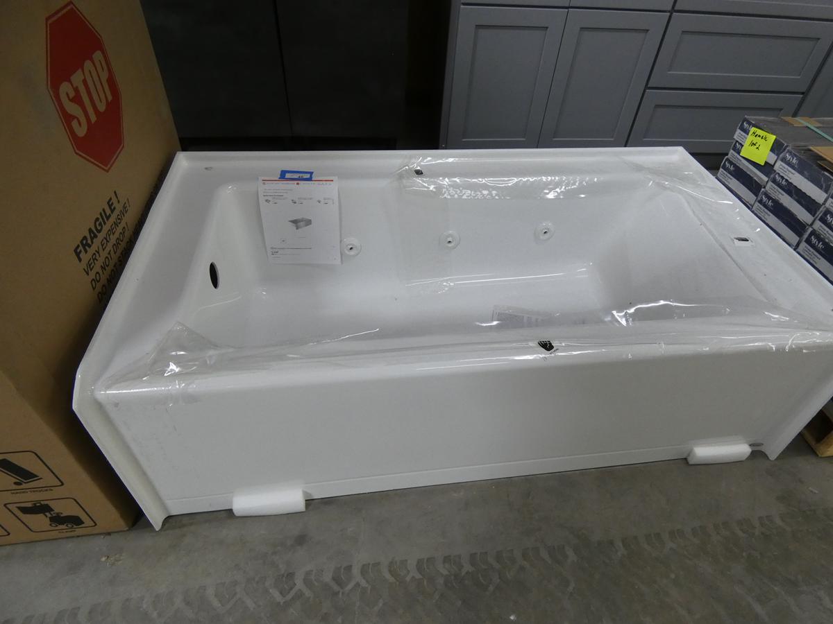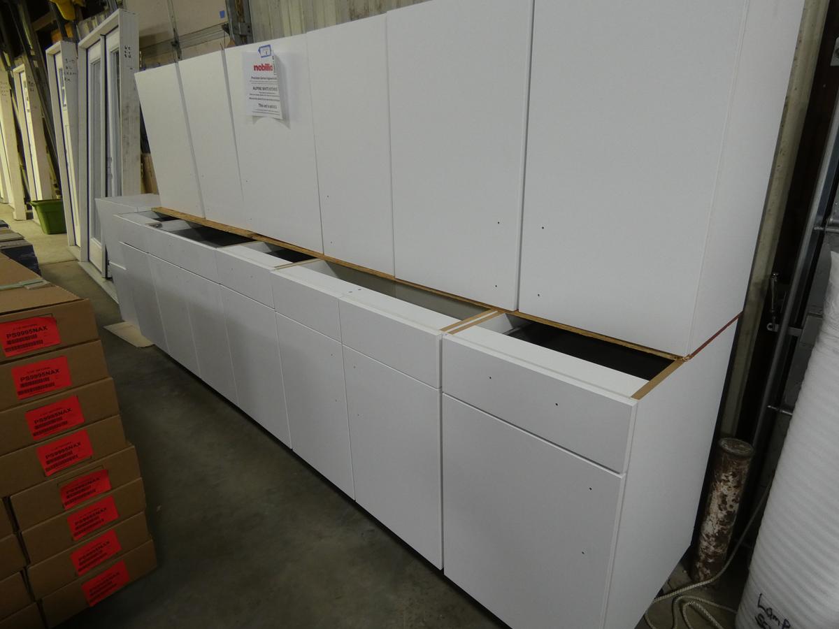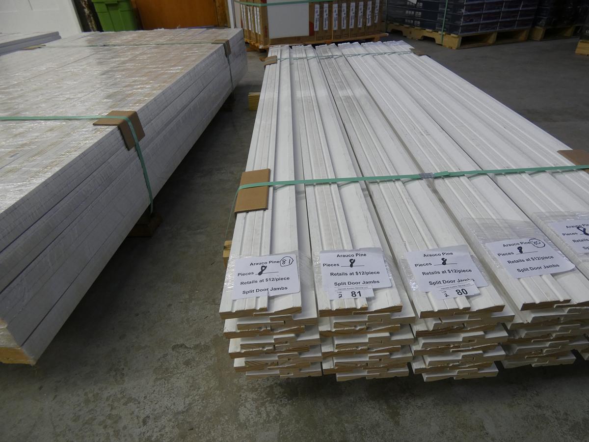 Seven kitchen cabinet sets with 12 – 16 pieces, flooring: laminate – vinyl – hardwood, bags of insulation, Jacuzzi tubs, French patio door, bathroom vanities, farmhouse sinks, stainless steel sinks, kitchen faucets, doors, laminate padding, wall sconces, trim, and much more! See bidding site for photos and details.