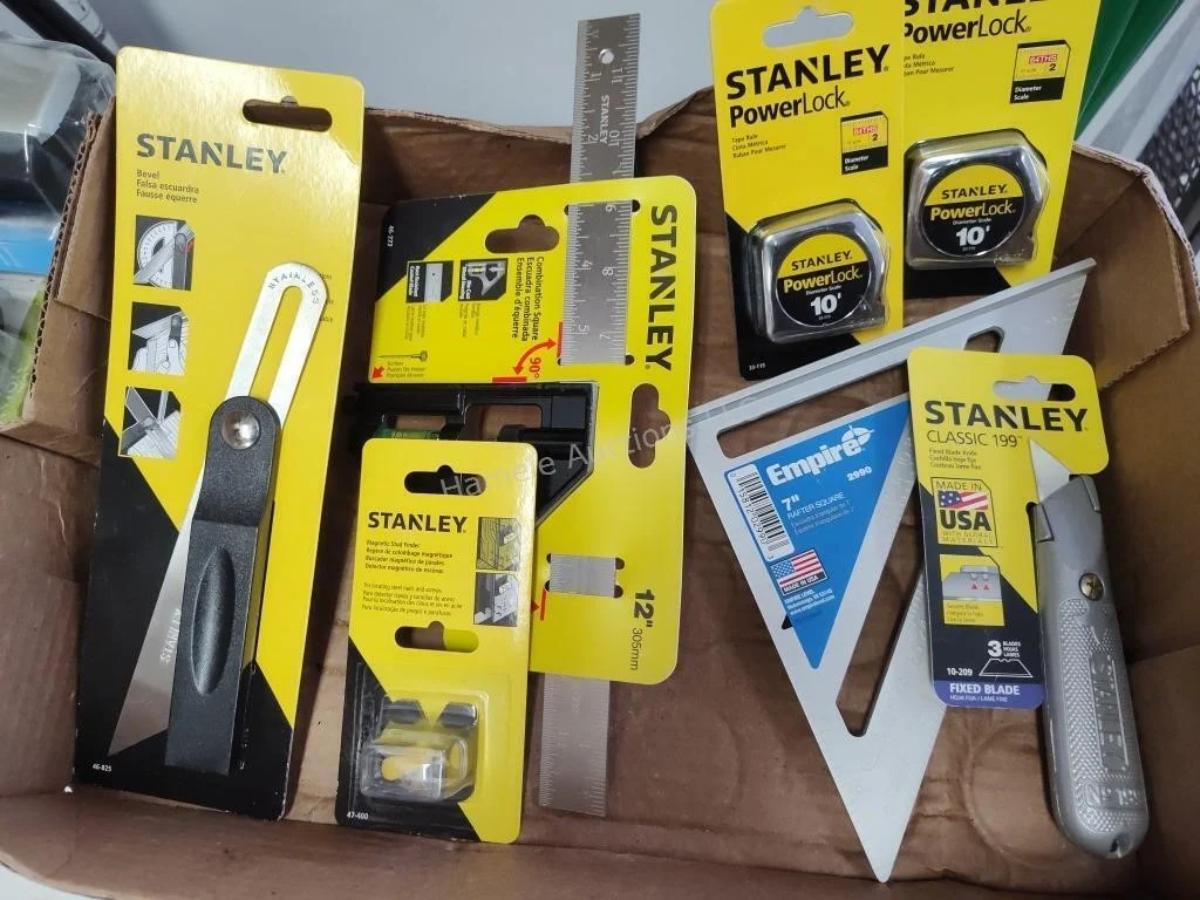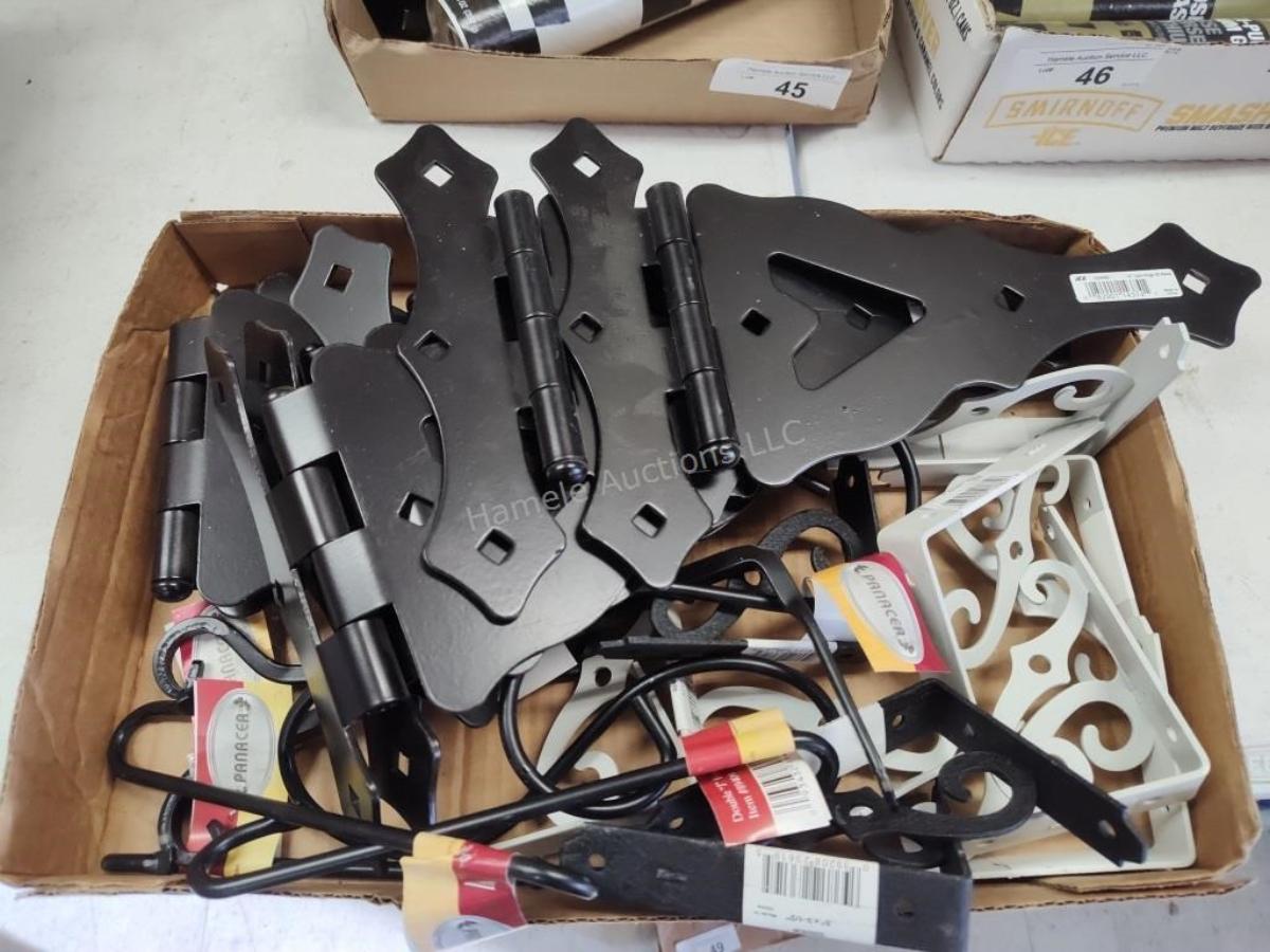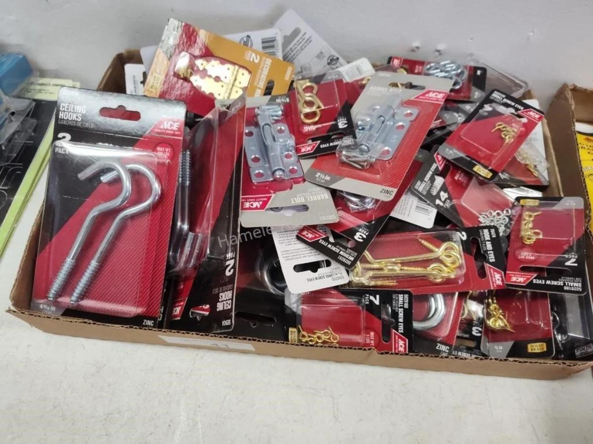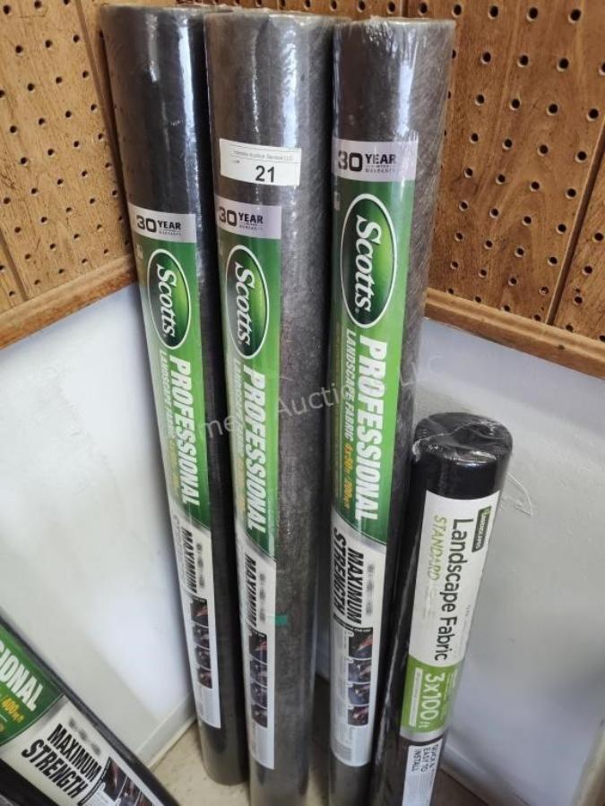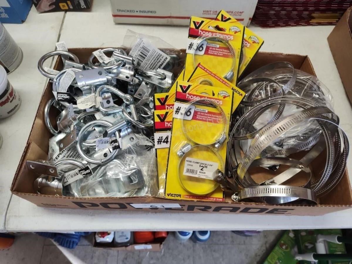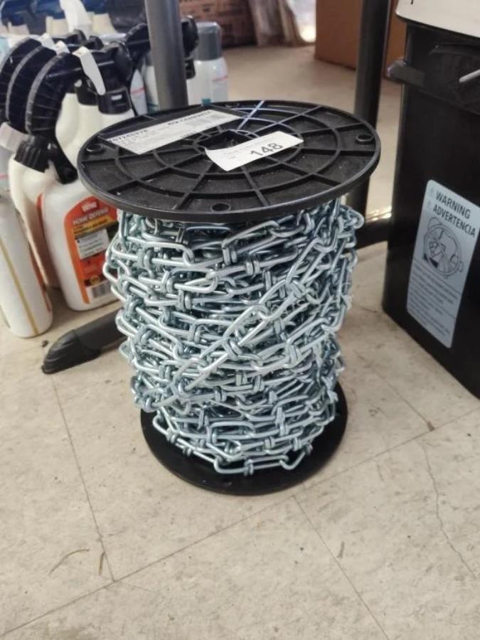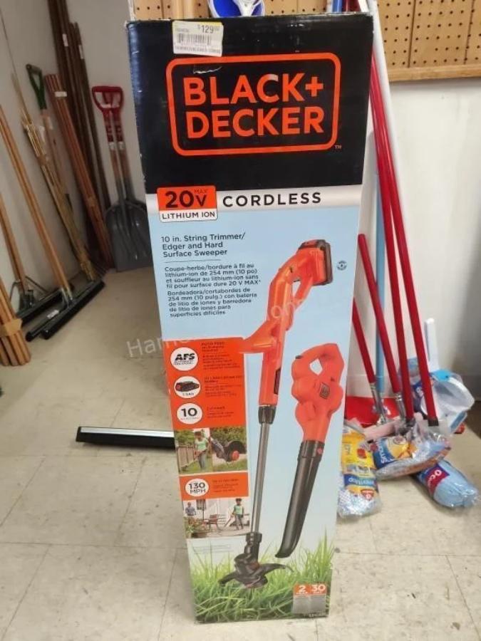 Black & Decker cordless trimmers, garden fences, landscaping fabric, shovels, squeegees, Rotosaw, cleaning supplies, John Deere pitchfork, bathroom items, Stanley tools, belts, filters, light bulbs, doorbells, dog / pet items, signs, canopy umbrella, extension cords, hardware, kids’ ski gloves, pool vacuums, chains, bungee cords, cables, and much, much more!! See bidding site for photos and details.