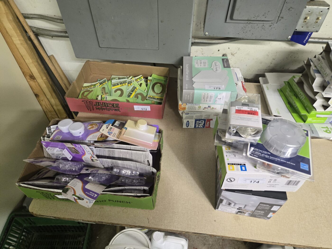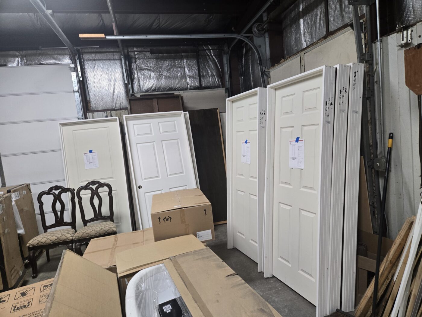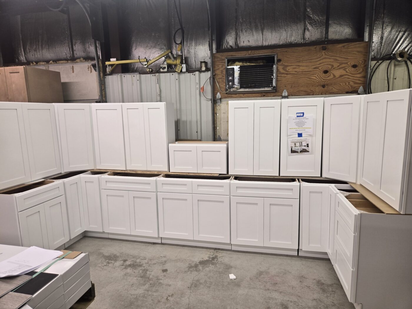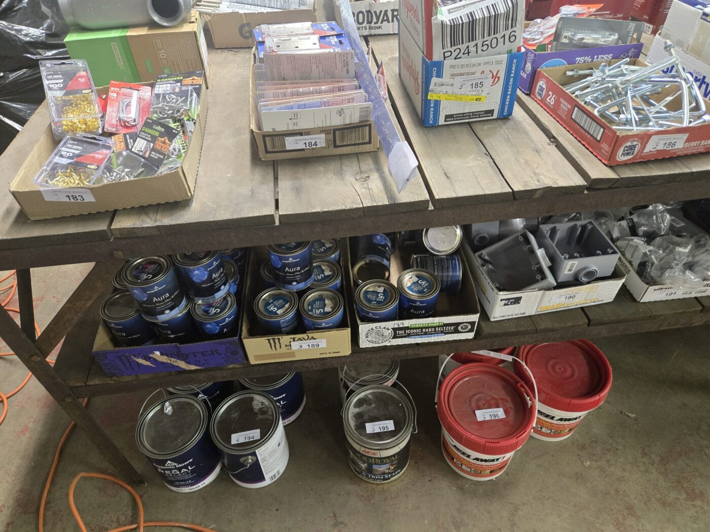 Kitchen cabinet sets, waterproof vinyl flooring, laminate flooring, hardwood flooring, tile, caret, base board, crown molding, doors, tubs, sinks, chairs, vanities, side cabinets, mirrors, faucets, door locks, bulbs, adhesives, hardware, paint, electrical items, nails, plumbing items and much more! See bidding site for photos and details.