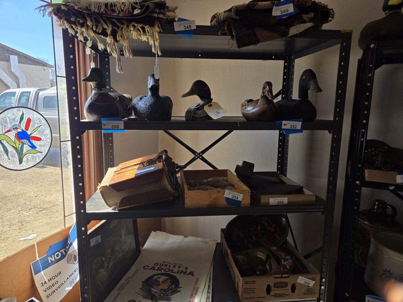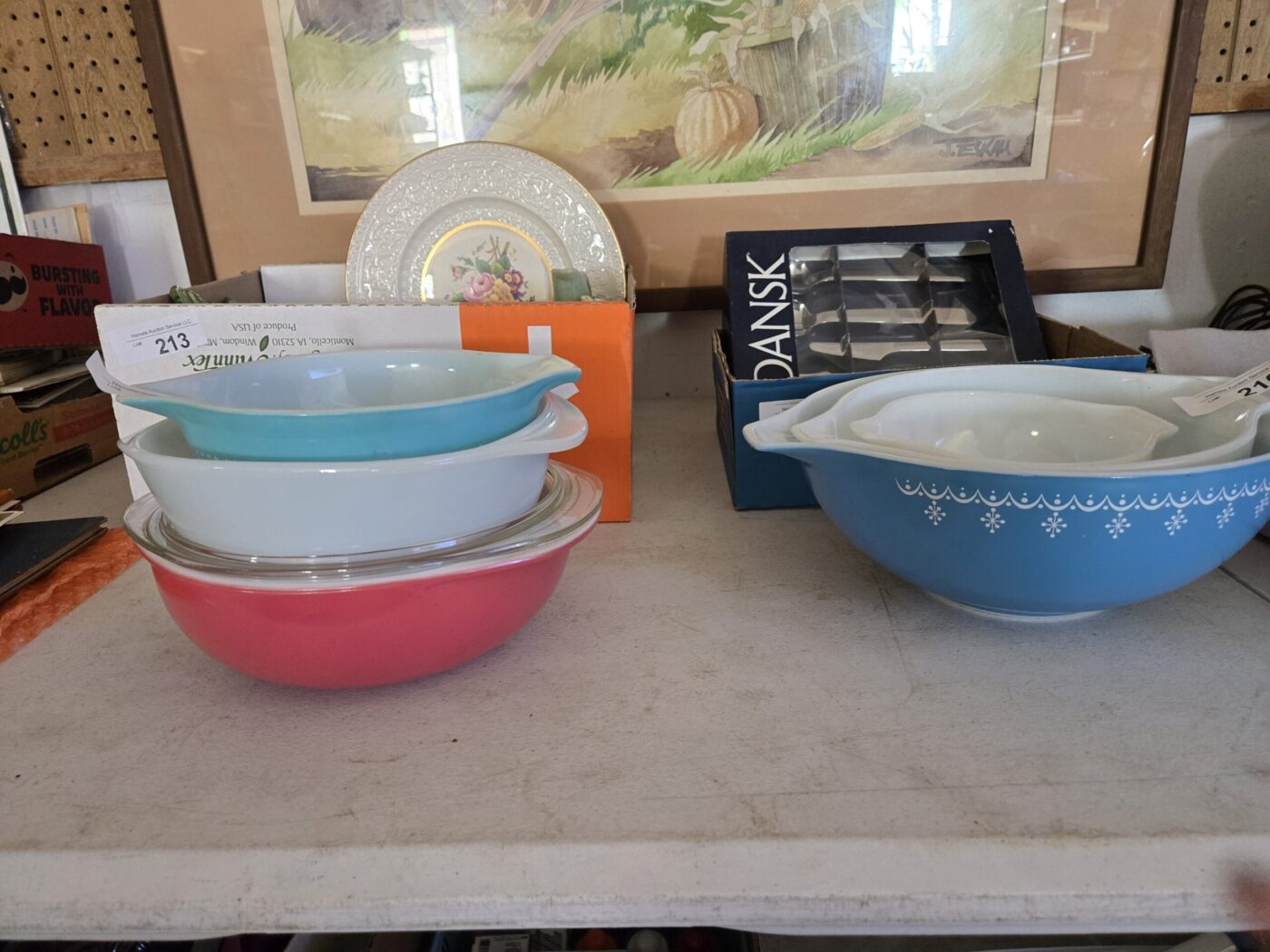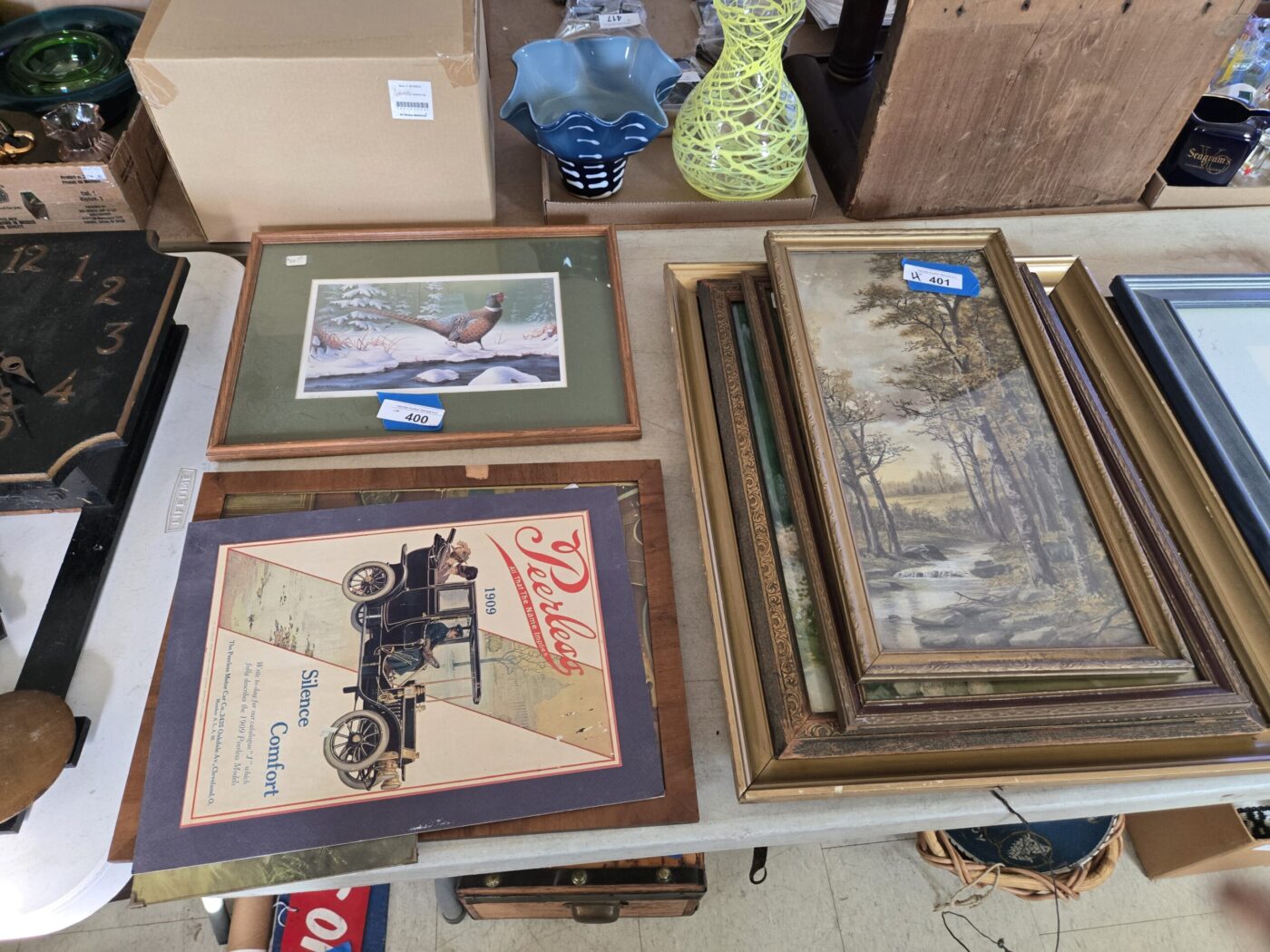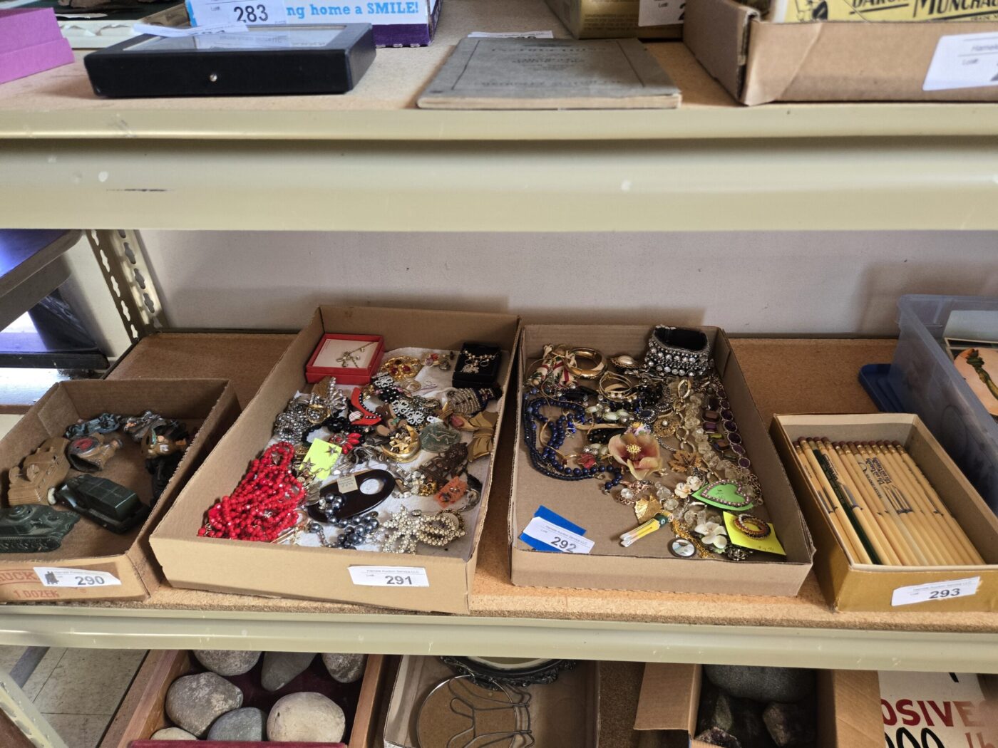 Lamps, dishware, glassware, Pyrex, paintings, yearbooks, Boy Scout items, vintage items, jewelry, clothing, flatware, colored glass, wooden wares, throws, lanterns, weavings, arrowheads, model kits, advertising & paper items, signs, sculptures, milk bottles, crocks, alcohol items, trunk, hardware, baskets, lighters, clocks, fishing items, pens, collectible currency, locks, totes, kitchenware, furniture, hunting items and much more! See bidding site for photos and details.
