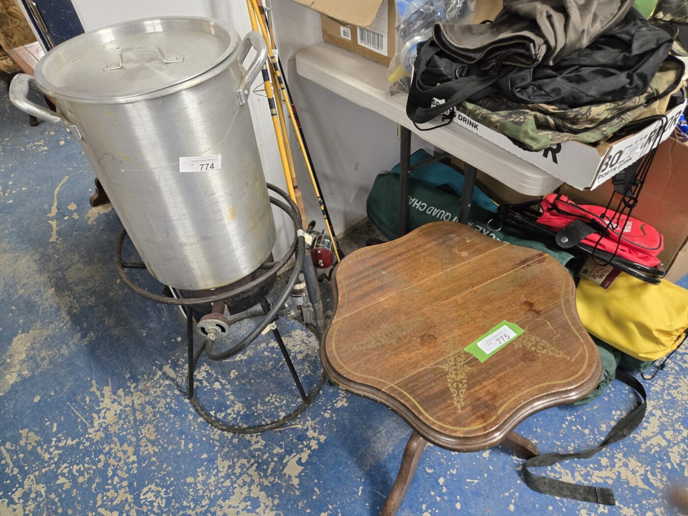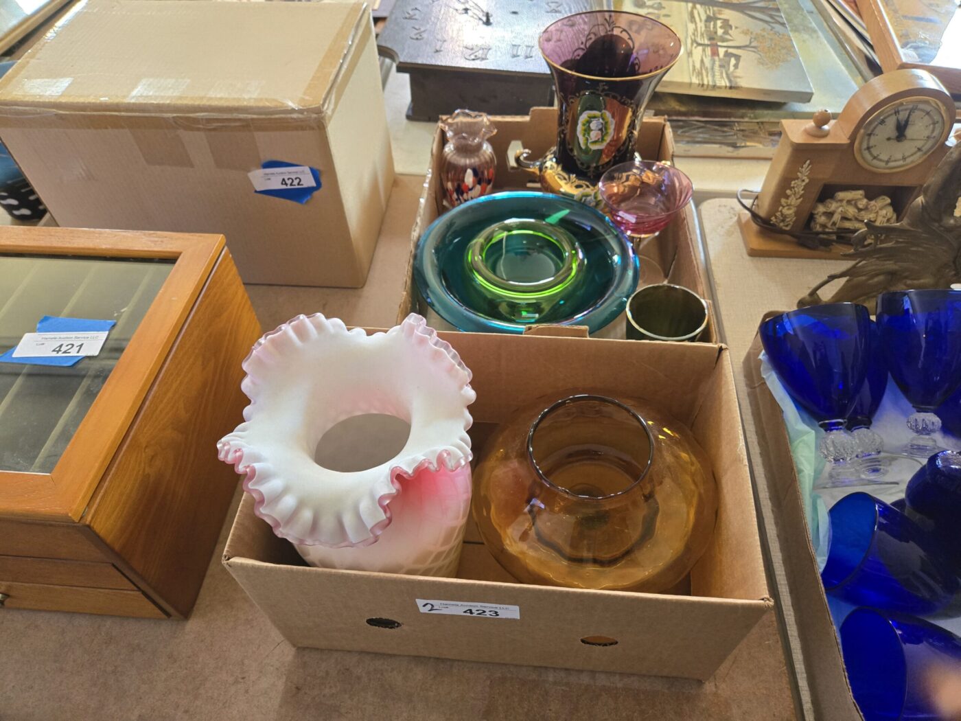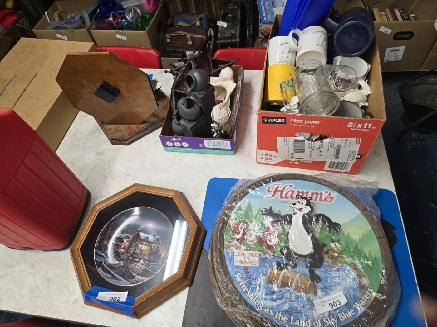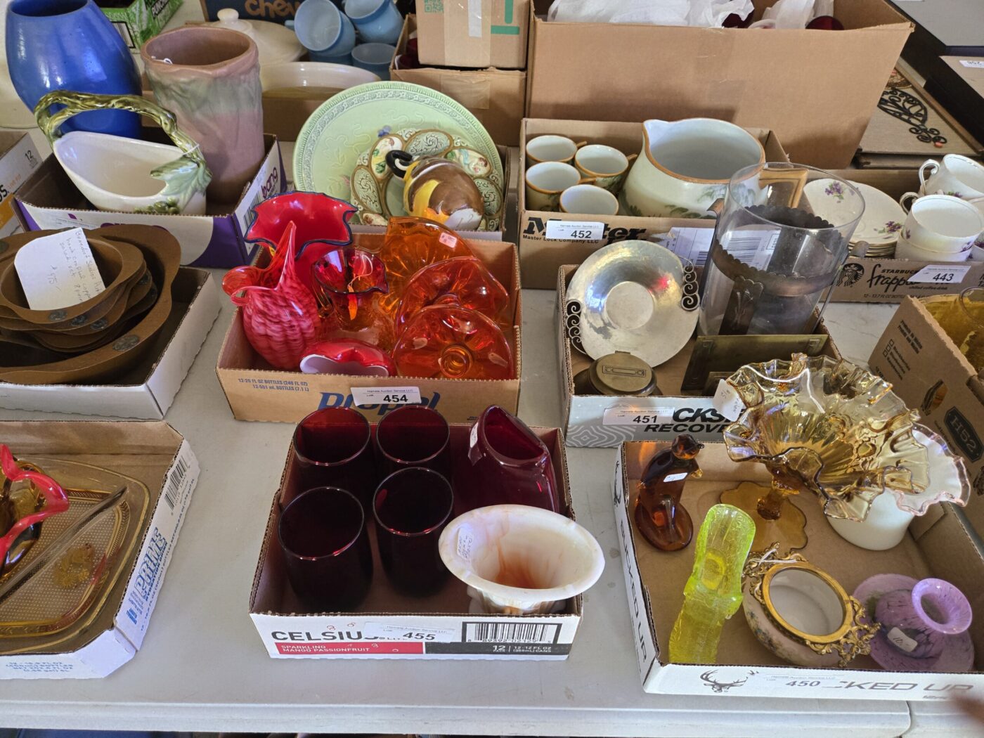 Lamps, dishware, glassware, Pyrex, paintings, yearbooks, Boy Scout items, vintage items, jewelry, clothing, flatware, colored glass, wooden wares, throws, lanterns, weavings, arrowheads, model kits, advertising & paper items, signs, sculptures, milk bottles, crocks, alcohol items, trunk, hardware, baskets, lighters, clocks, fishing items, pens, collectible currency, locks, totes, kitchenware, furniture, hunting items and much more! See bidding site for photos and details.