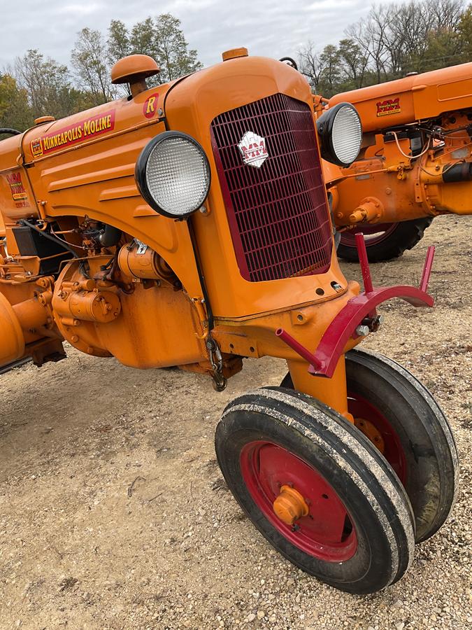 1945 Model “R” fully restored Minneapolis-Moline tractor and 1952 Model “ZAU” Minneapolis-Moline tractor with extra parts.  See bid site for details and photos.