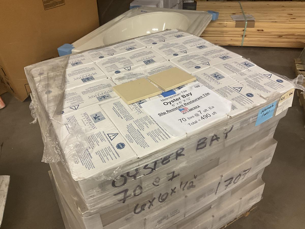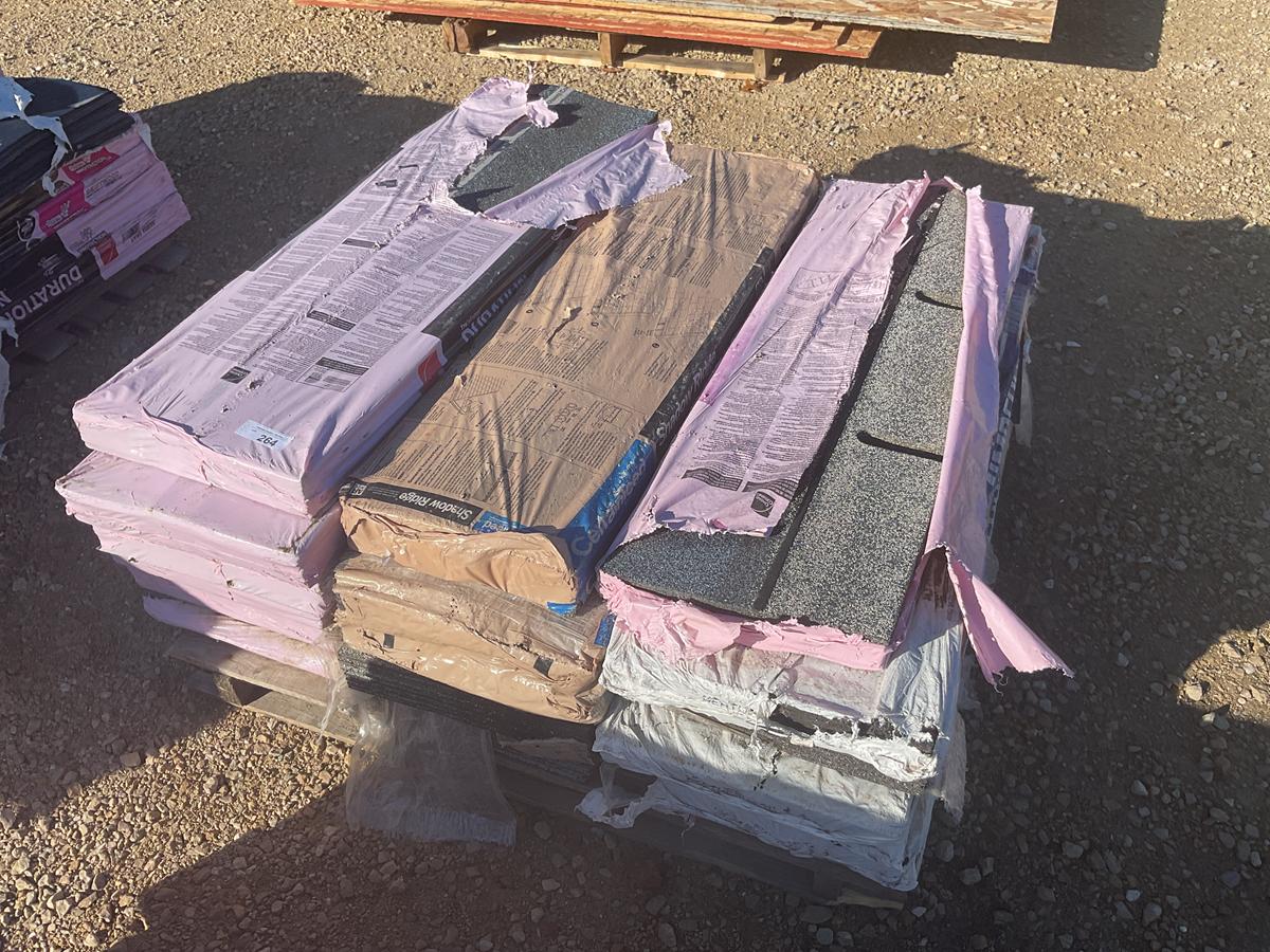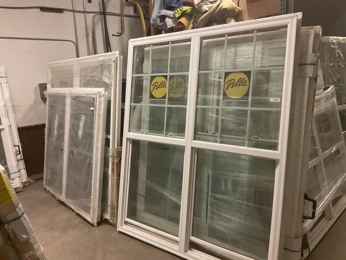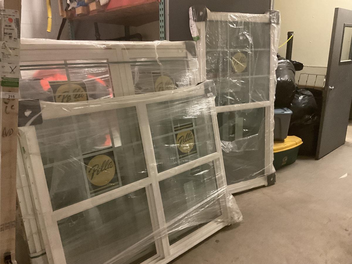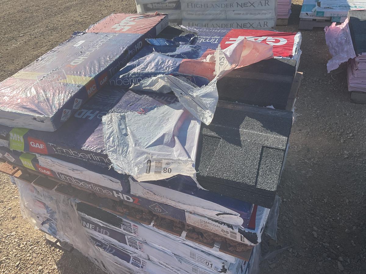 Many kitchen cabinet sets, variety of flooring, door jambs – mostly pine, trim – pine or MDF, insulation, Jacuzzi tubs, cement boards, tile, sinks – farmhouse & others, faucets, digital door locks, lighting fixtures, windows – many sizes & shapes, doors, shingles, lumber, steel beams, rib steel panels, and much more. See bid site for details and photos.