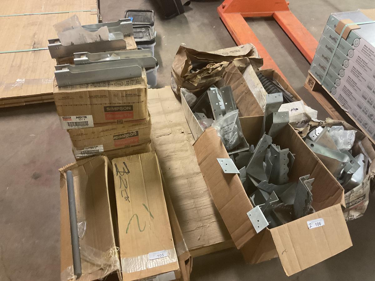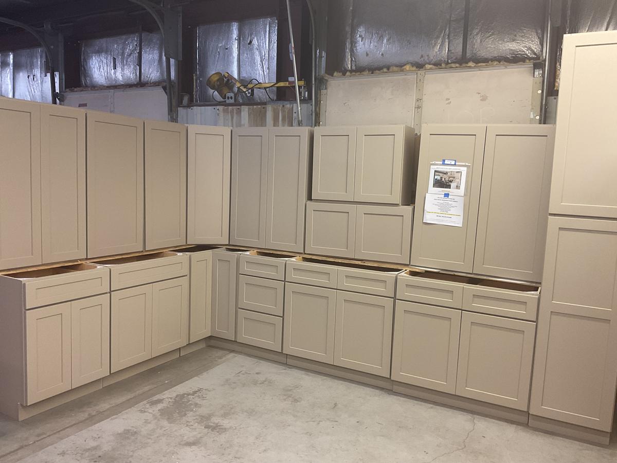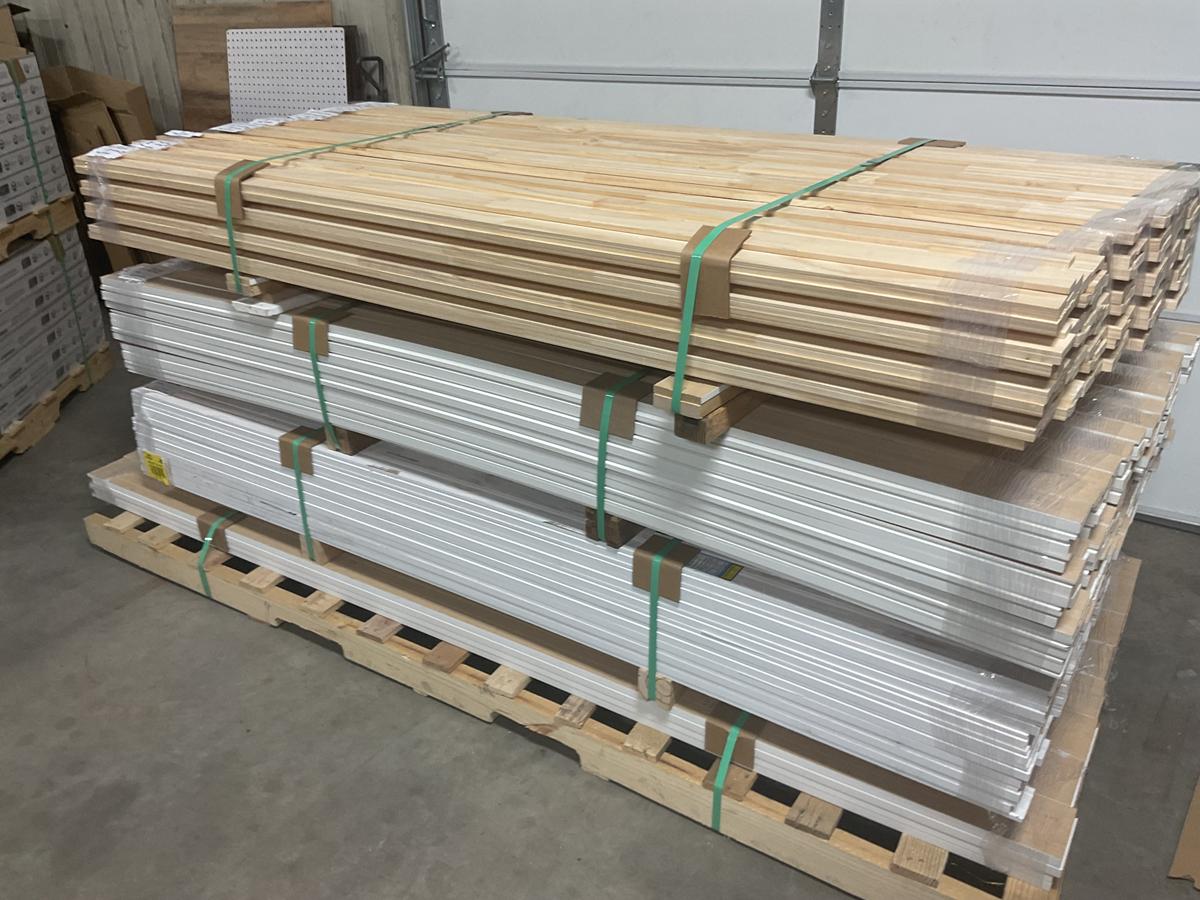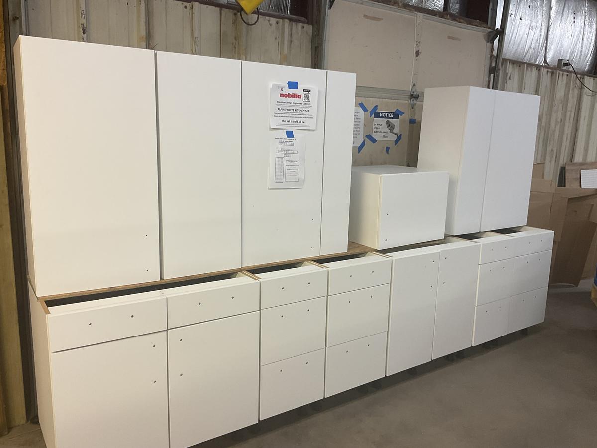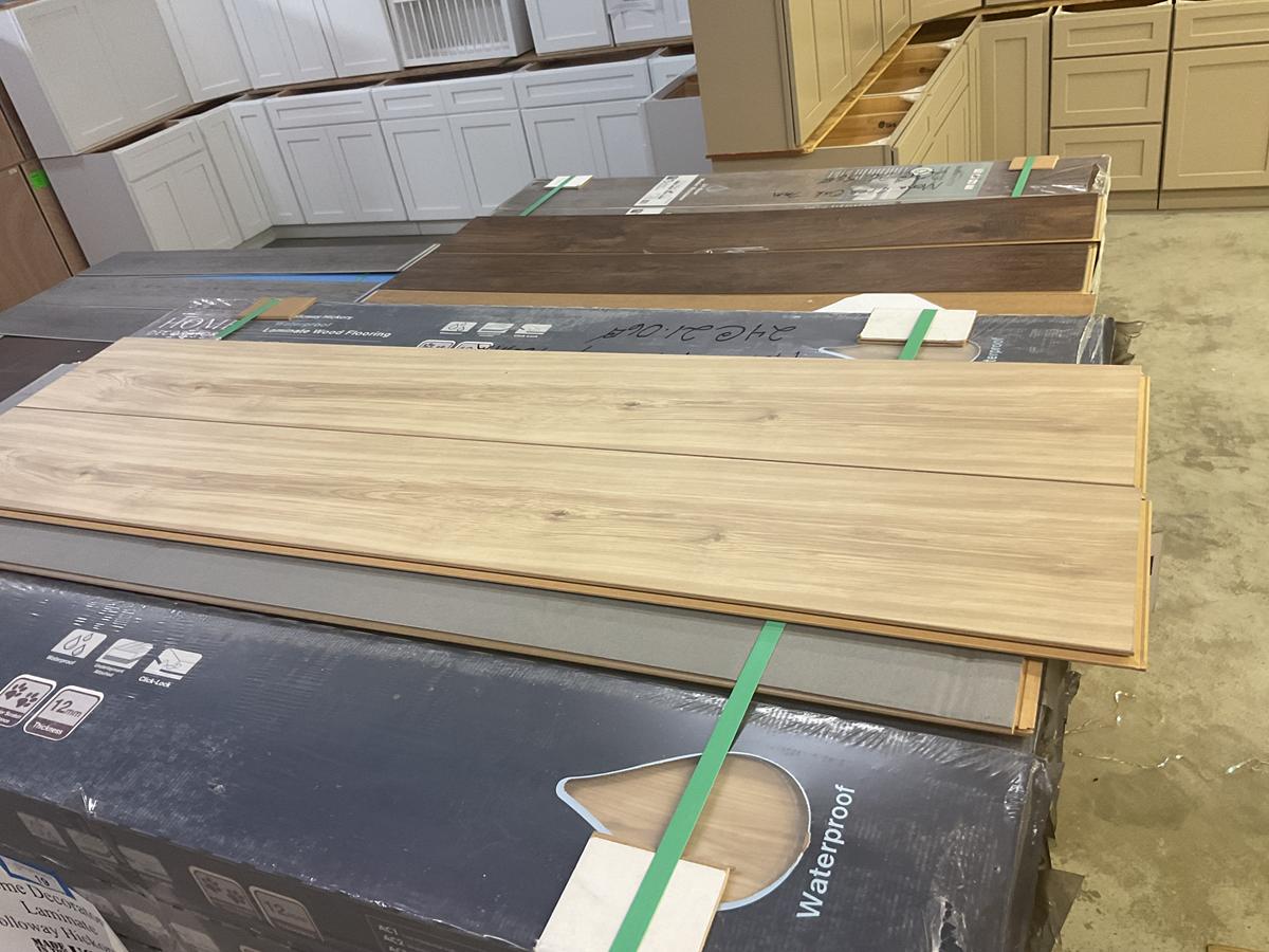 Many kitchen cabinet sets, variety of flooring, door jambs – mostly pine, trim – pine or MDF, insulation, Jacuzzi tubs, cement boards, tile, sinks – farmhouse & others, faucets, digital door locks, lighting fixtures, windows – many sizes & shapes, doors, shingles, lumber, steel beams, rib steel panels, and much more. See bid site for details and photos.