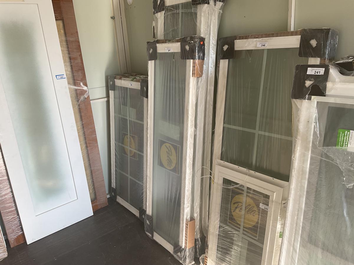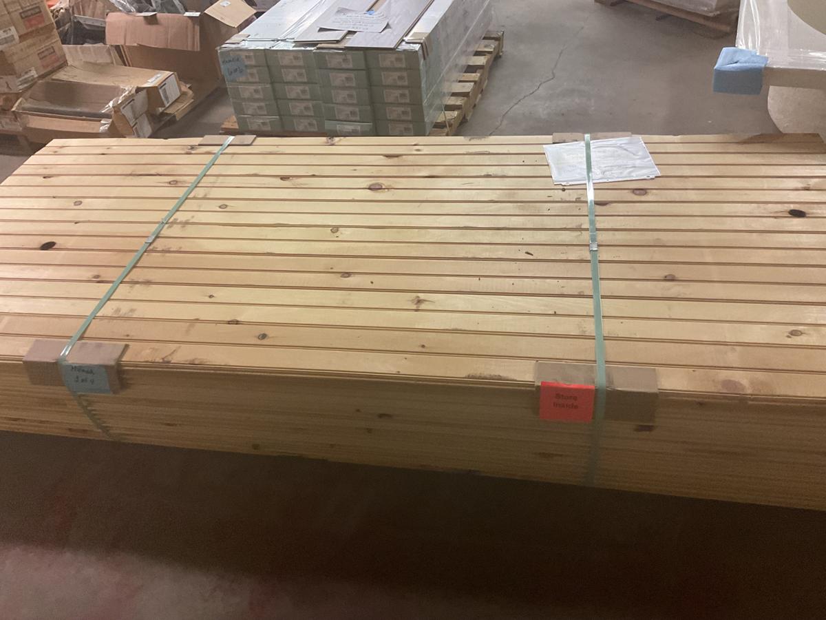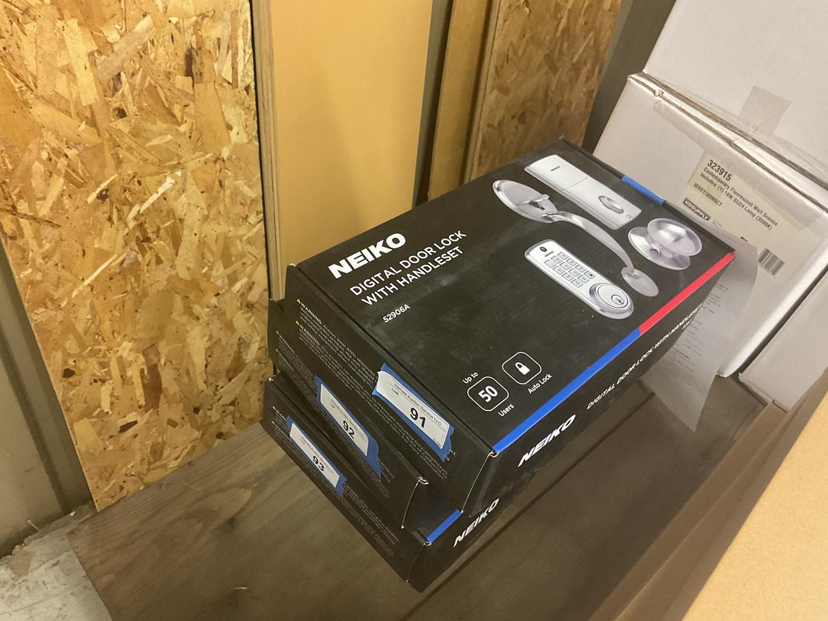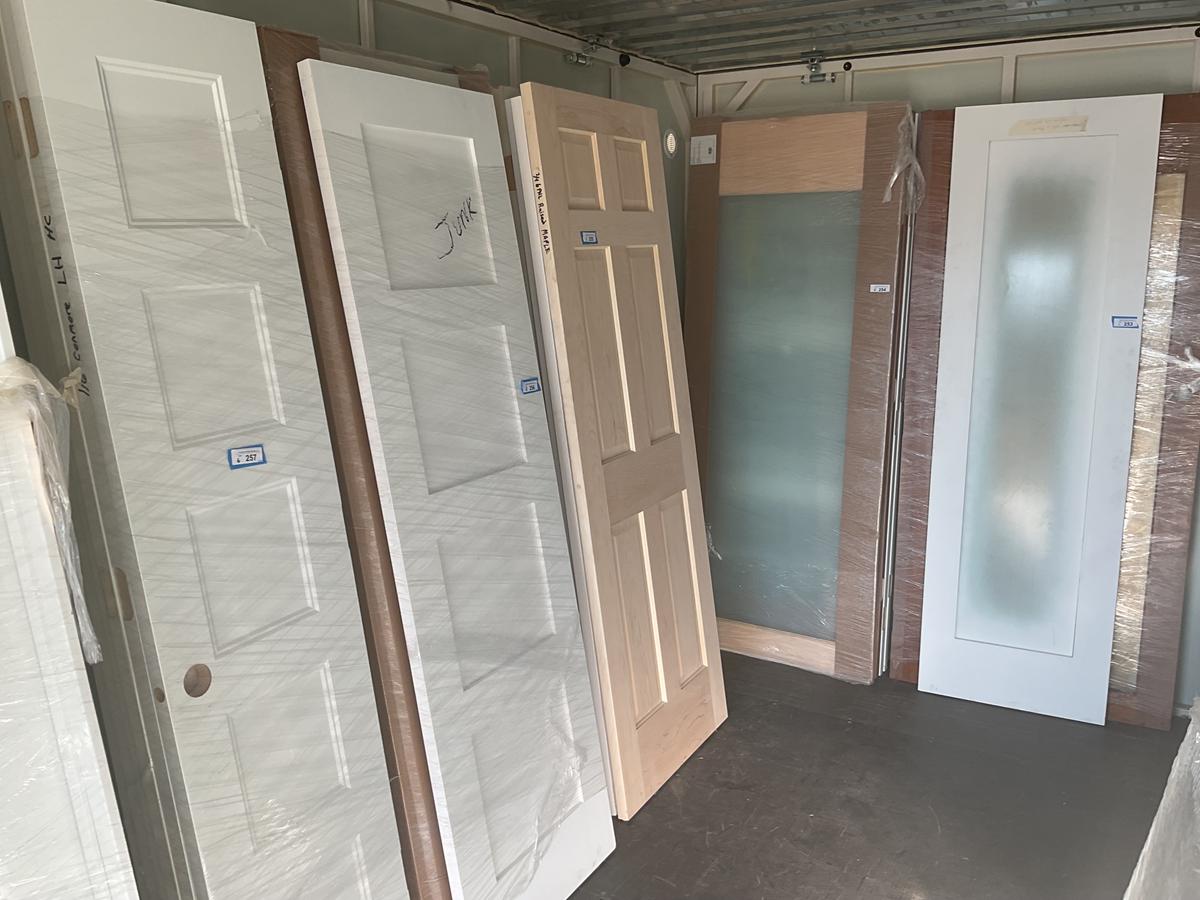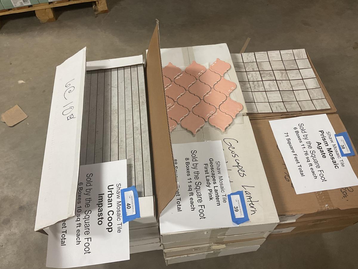 Many kitchen cabinet sets, variety of flooring, door jambs – mostly pine, trim – pine or MDF, insulation, Jacuzzi tubs, cement boards, tile, sinks – farmhouse & others, faucets, digital door locks, lighting fixtures, windows – many sizes & shapes, doors, shingles, lumber, steel beams, rib steel panels, and much more. See bid site for details and photos.