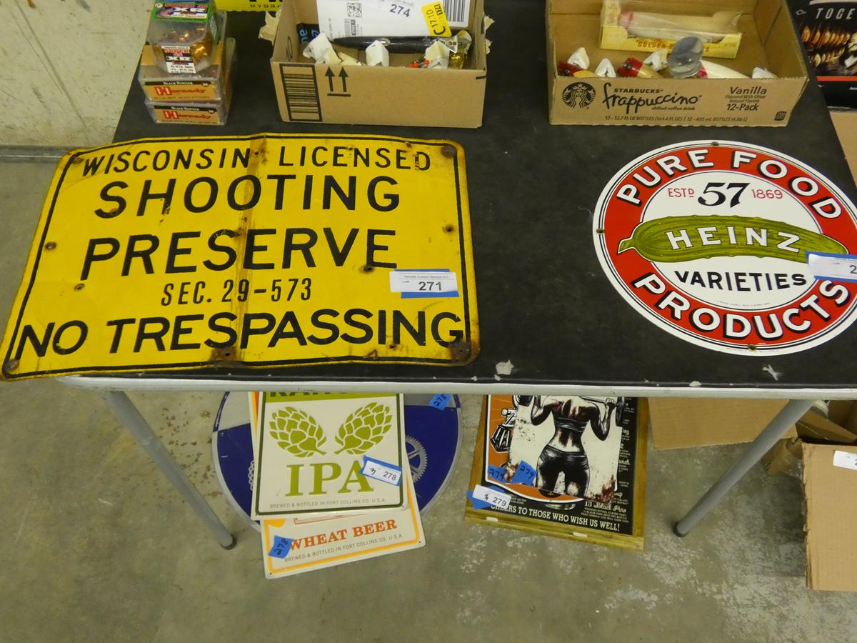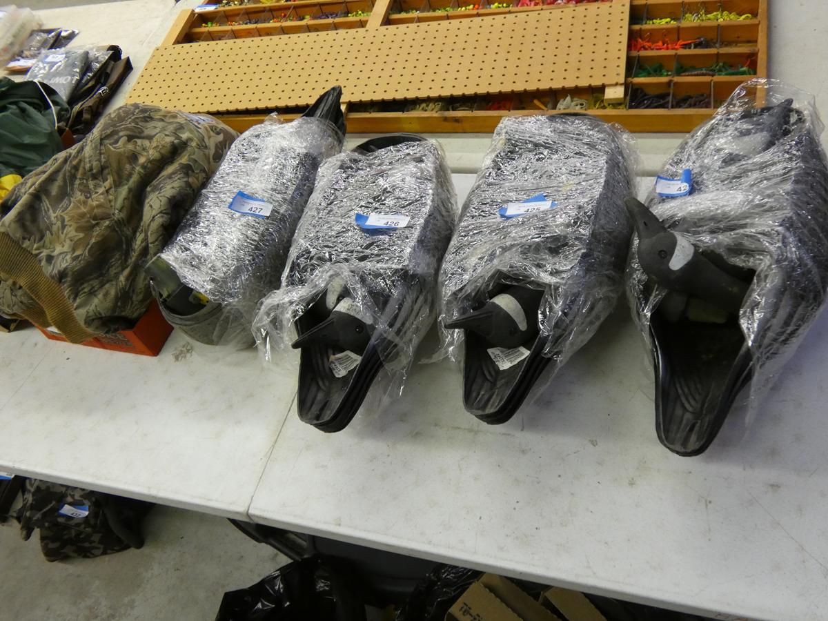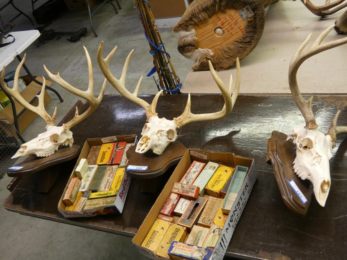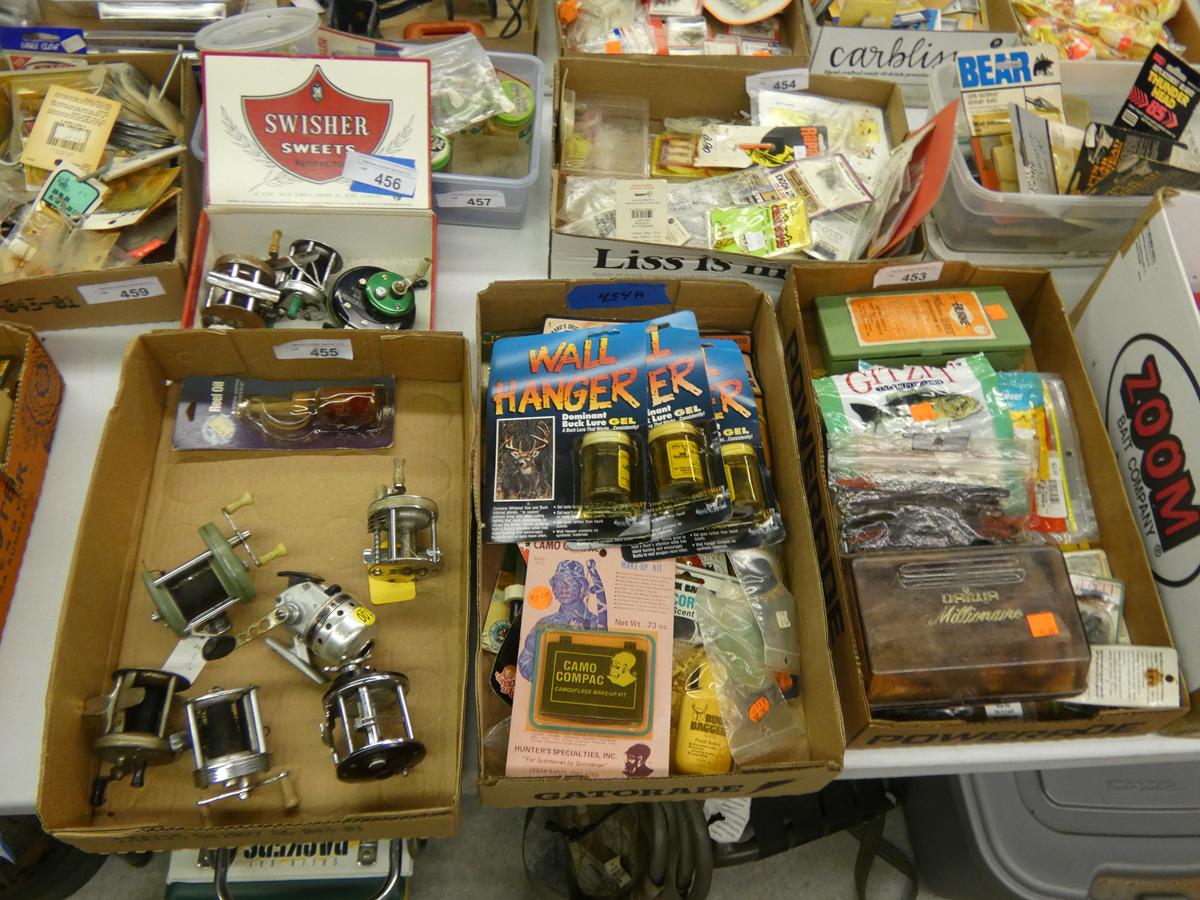 Polaris ATP ATV, tandem axle trailer, Fortress safe, LP tanks, snowblower, hitch racks, tree stands, mounts, snowblower, goose & duck decoys, trap thrower, ice augers, Frabill ice fishing sled, tires & wheels, coolers, knives including Ducks Unlimited 75th Anniv knife, Blue Triad triathlon bike, snowshoes, boating & fishing items, NASCAR items, baseball caps, hunting items, variety of ammo, ping pong table, variety of signs, display cabinets and much more. See bid site for full catalog.
