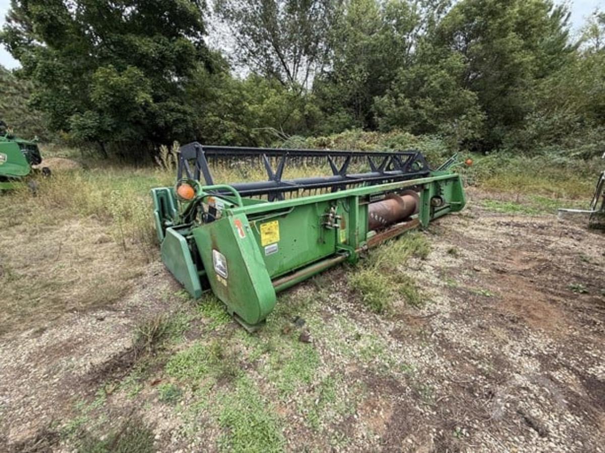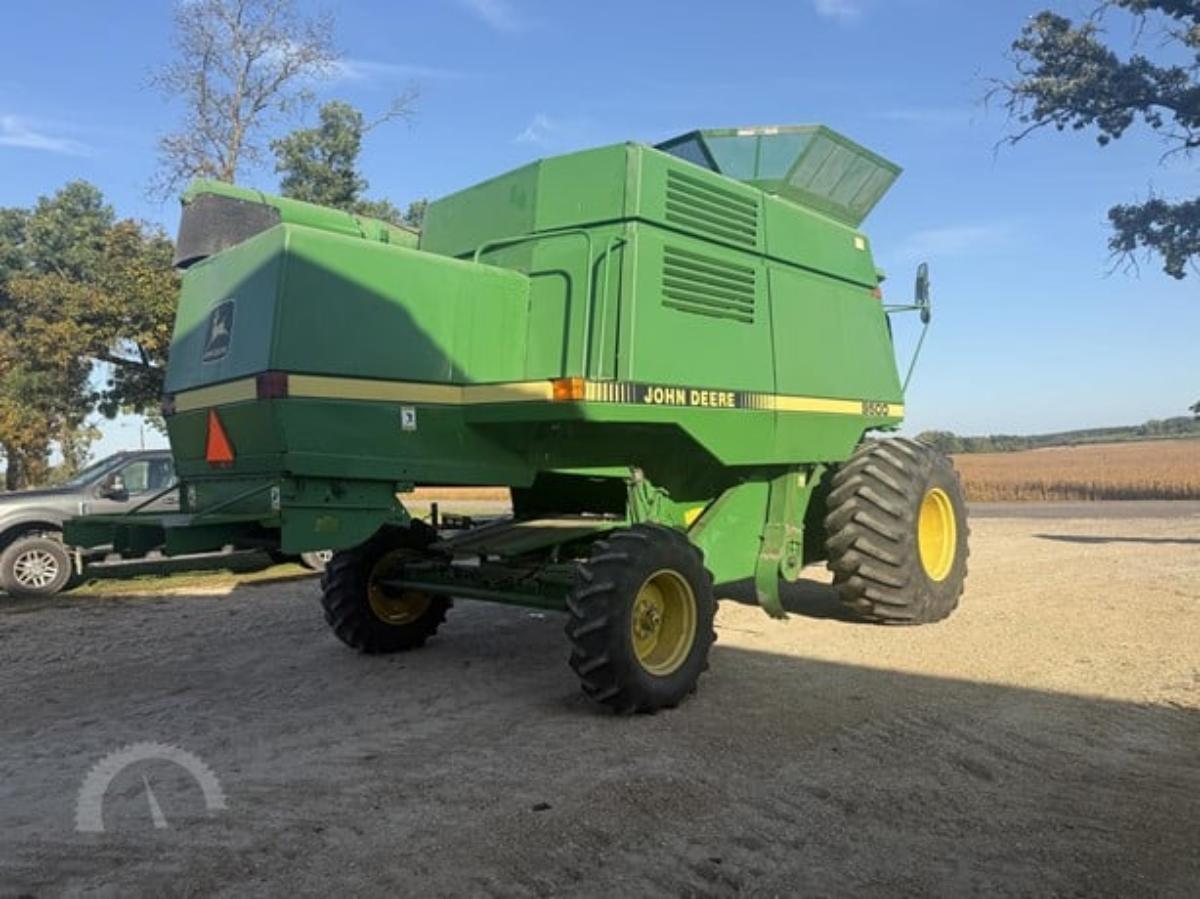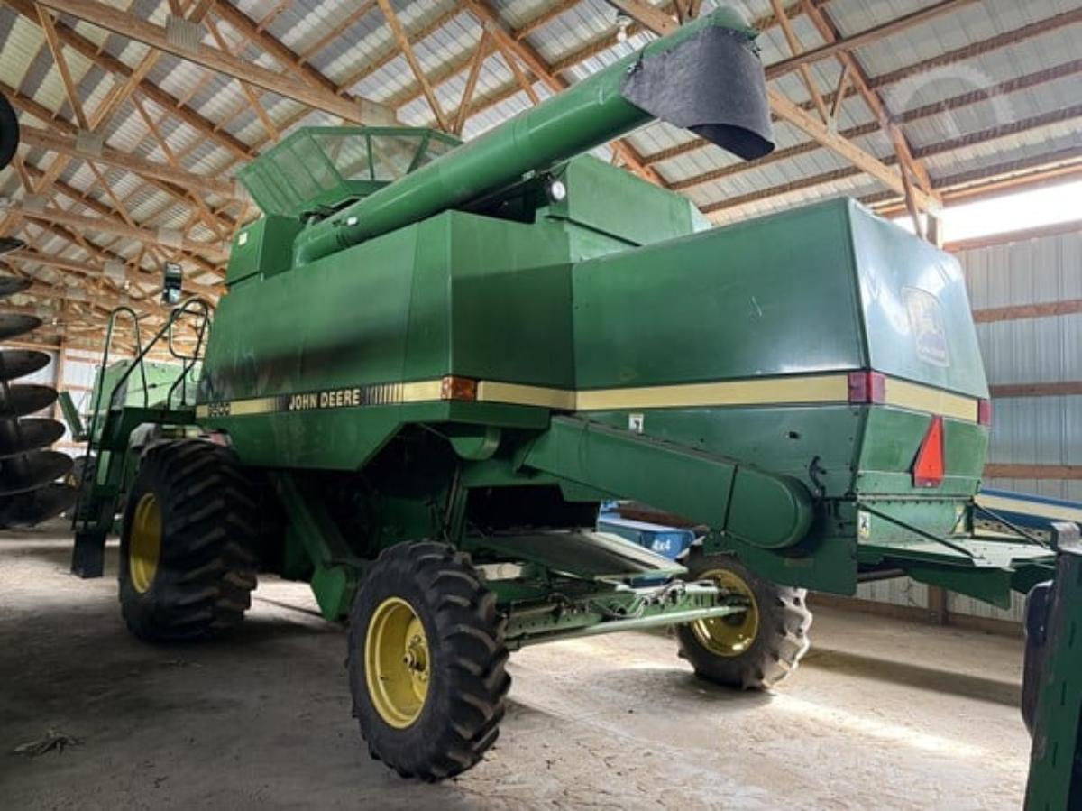 7 pieces of equipment: 1989 John Deere 9500 combine (Very clean low hr machine 2nd owner 1680hrs and 957 separator hrs very little use appears to be original hrs.) -- 2005 Speed King 4 box seed tender -- 2002 Ford E150 passenger van -- 1997 Jet hopper / grain trailer -- 1997 John Deere 918 platform header -- 1997 Mac MR688P cab truck -- 2022 Load Dock 30,000 lbs.. All located in Oxford, WI*. See bidding site for details and more photos.
