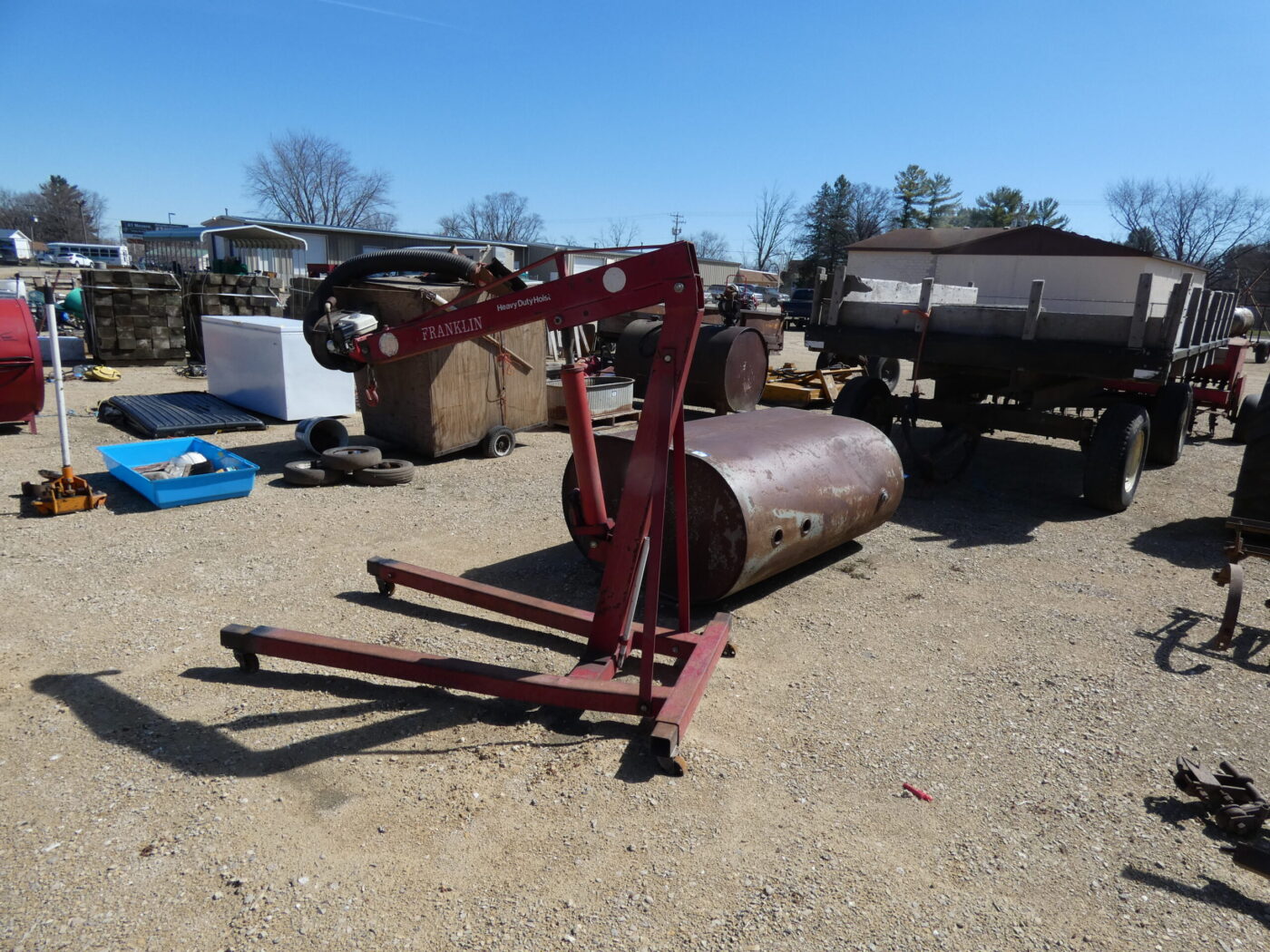 Items Include: 2018 Lovol Nortrac Tractor, 2004 Chevy Silverado, John Deere 1010, 1940 Ford 9N, Log splitters, Ferguson 30, cultivators, engine hoist, dump wagon, grain drill, brush mower, tanks, chains, fan, chest freezer, ice shanty, ladders, gas cans, trailers, tires, wood blocks, mowers, press, traps, sprayer, generators and much more!